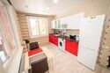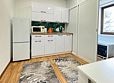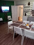 * кухня ( холодильник, СВЧ-печь, электрический чайник, стол, посуда).