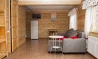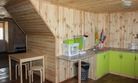 Новые апартаменты оснащены всем необходимым для комфортного отдыха. На первом этаже расположена небольшая кухонная зона с холодильником, микроволновой, чайником и телевизором. Туалет и душевая так же на первом этаже.