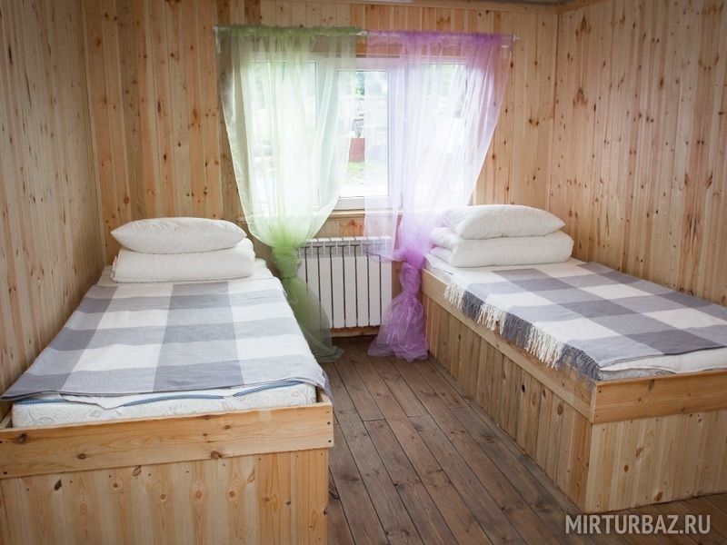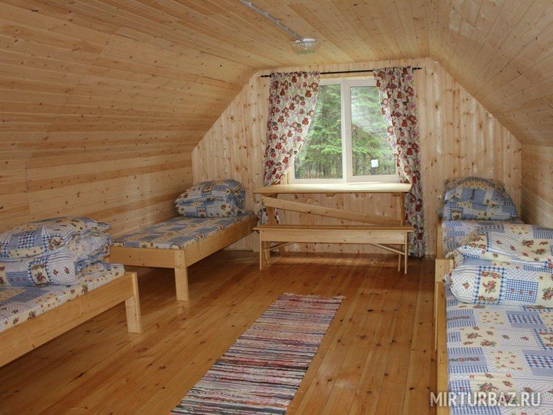 Второй этаж (мансарда): 4 отдельные кровати, стол, лавка, чайник электрический.