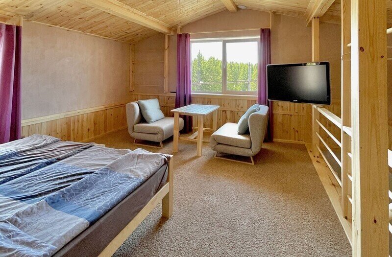 Путешествие с семьейОтдых в Приозерном Вам непременно понравится!В этом месте идеально все! Ребята, которые там работают и встречают гостей - замечательные хозяева! В гостях Приозерного находиться одно удовольствие. При заселении все расскажут, покажут, при возникших вопросах все решается по звонку. В номерах просторно и чисто. Есть все необходимое. В данном номере есть своя кухня - плитка, холодильник, микроволновка, хорошая, красивая посуда на 4 персоны, принадлежности для готовки, чайник, кухонный гарнитур. Расселение комфортное для проживания 4 взрослых, в нашем случае + ребёнок 3-ёх лет. Сторона не солнечная, поэтому утром более чем комфортно. Есть телевизор и уйма каналов на любой вкус. Ванная комната, как отдельный вид искусства - огромная душевая зона. Все замки, двери, механизмы рабочие. Две приличные, красивые мангальные зоны. Шикарная баня - просторная, современная, жаркая. Персонал отзывчивый и очень клиентоориентированный. До озера 3-4 минуты очень спокойным шагом. От души рекомендую отдых в Приозерном.