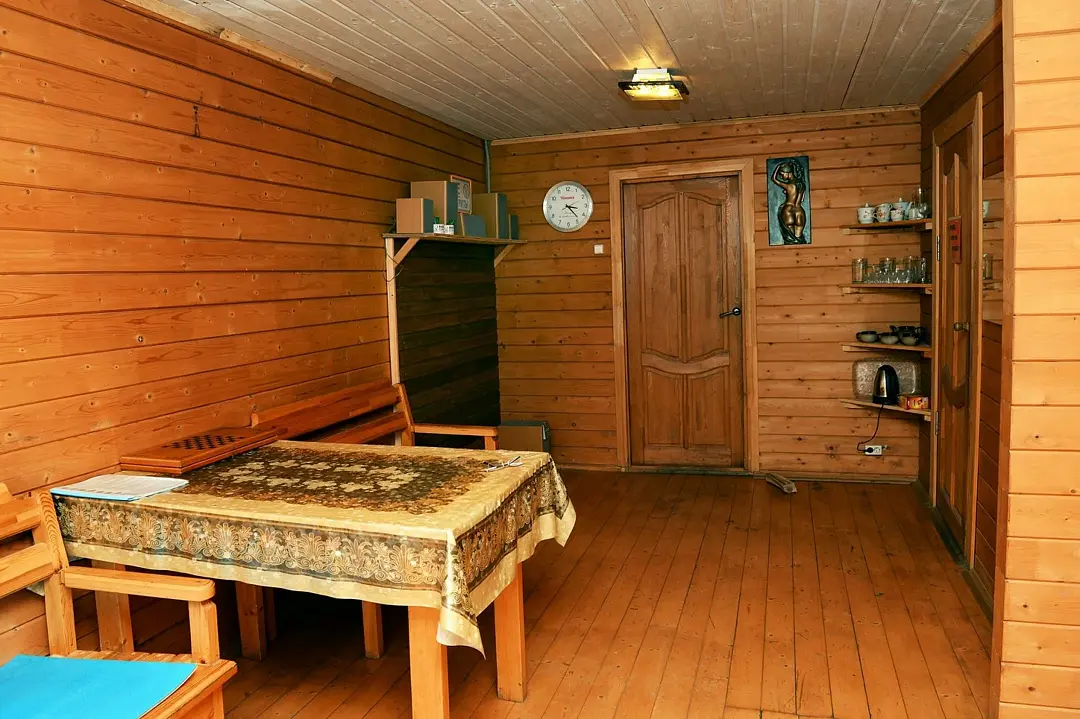 Инфраструктура: тапочки, шапочкиРасположение: выход к рекеМинимальное время аренды: 2 часаБанька из клееного бруса на берегу реки с водопадом,