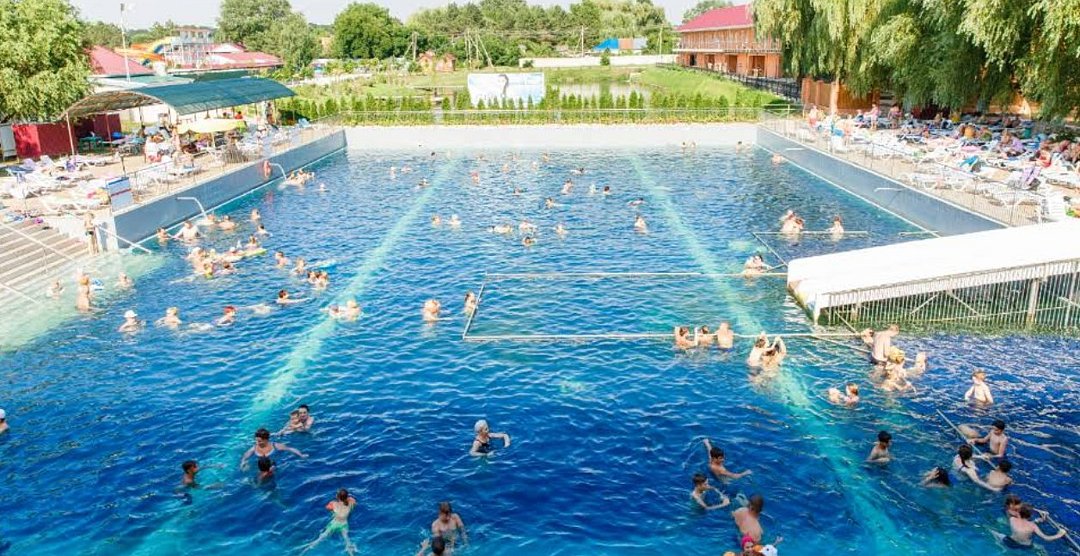 В загородной зоне для гостей доступен большой открытый бассейн с термальной минеральной водой из источников. Глубина — 1,4 м, длина — 25 м, ширина — 50 м. Вода нагревается до + 26… + 34 °C. Температура зависит от погодных условий и сезона. Около бассейна установлена длинная водная горка с тремя спусками, ряды шезлонгов, солнцезащитные навесы, душевые кабины.