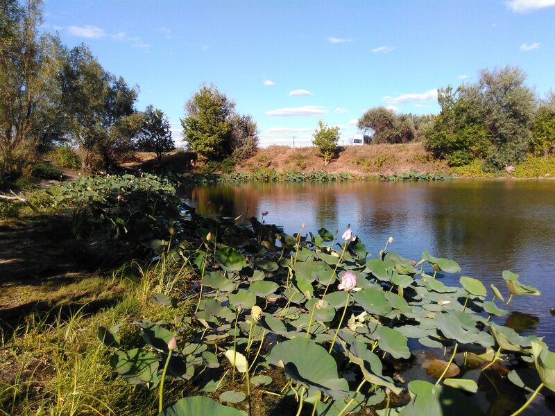 Но самое необычное растение поймы – это лотосы. Они занимают небольшое озеро неподалеку от ерика Гнилого. В конце августа – начале сентября растения расцветают. Над широкими листьями поднимаются прелестные бело-розовые цветки, на которых переливаются в лучах солнца водяные капельки.