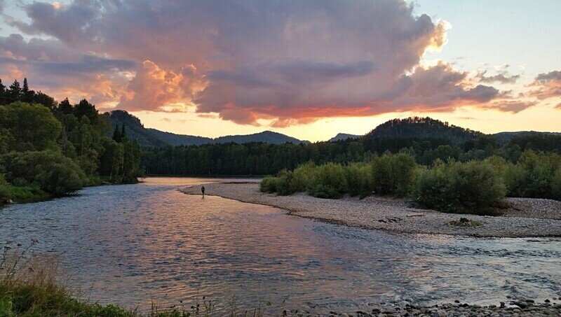 Вблизи истока вода реки Бия имеет красивый изумрудно-бирюзовый оттенок. Очень живописно выглядит слияние рек Бии и Катуни.