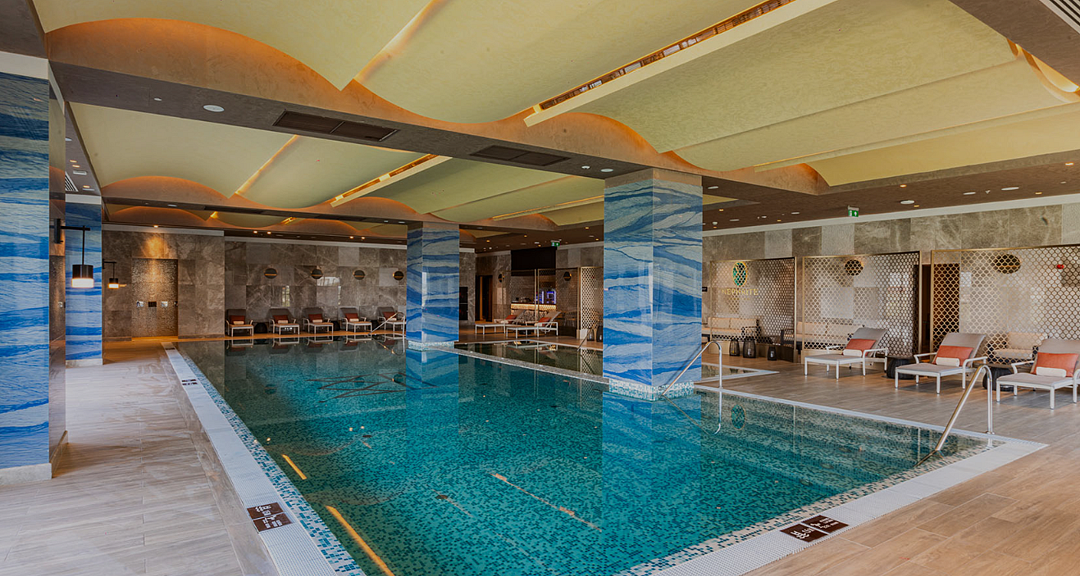 Гостям предоставляется доступ к разнообразным зонам для отдыха и релаксации: крытые и открытые бассейны, финская сауна, традиционный хаммам и современный фитнес-зал с новейшими тренажерами от TechnoGym.